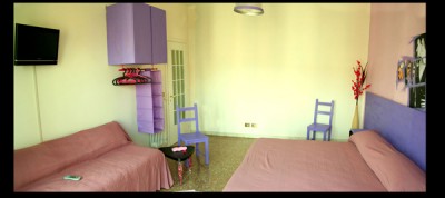 Camera doppia VIOLA con bagno condiviso e possibilità di aggiungere 3° e/o 4° letto.