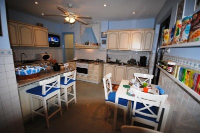 La grande cucina attrezzata è disponibile anche quale servizio accessorio per chi gradisce organizzarsi in autonomia i pasti.